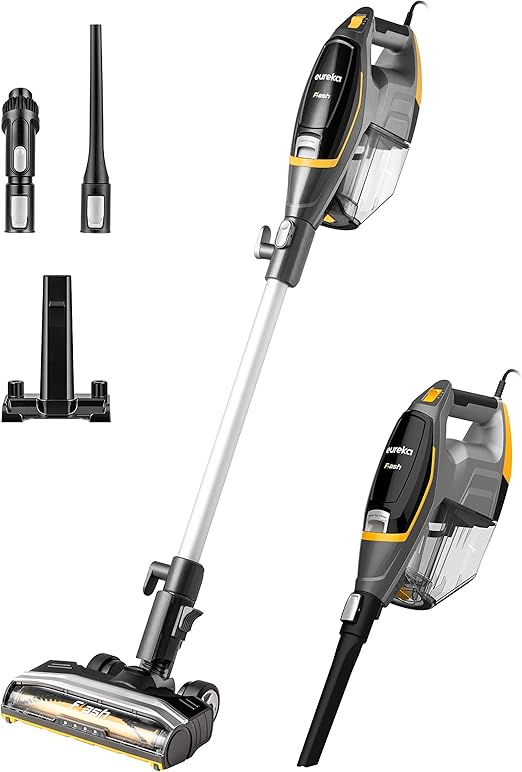 Amazon Com Eureka Flash Lightweight Stick Vacuum Cleaner 15kpa Powerful Suction 2 In 1 Corded Handheld Vac For Hard Floor And Carpet Black