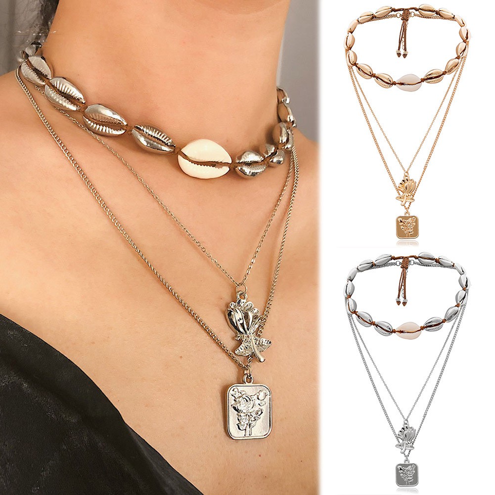 Women Alloy Chain Pendant Necklace Multi Layer Seashell Choker Jewelry Gifts Shopee Singapore