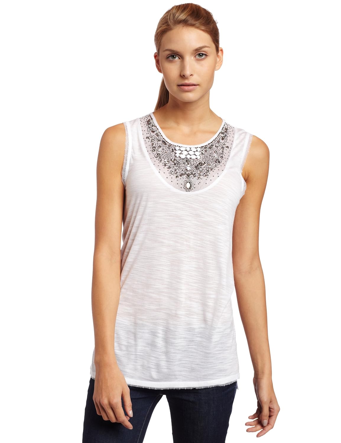bgmaxazria Women S Sleeveless Necklace Tank White Combo X Small Amazon In Clothing Accessories