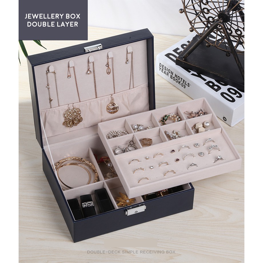 Large Capacity Double Jewellery Box Pu Leather Shopee Singapore