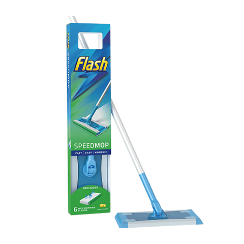 To remove tough stains, simply flip the mop over and scrub the stains with the green scrubby strip. From mop starter kits – we all have to start somewhere – to disposable wipes and cleaning solutions, we’ve got your mopping needs covered so you can stand up to daily dirt Flash SpeedMop Learn more. Now £22, the Flash Power Mop Starter Kit comes with a bottle of the cleaning solution and ten cleaning pads and batteries, so that you can use the mop straight out of the box.