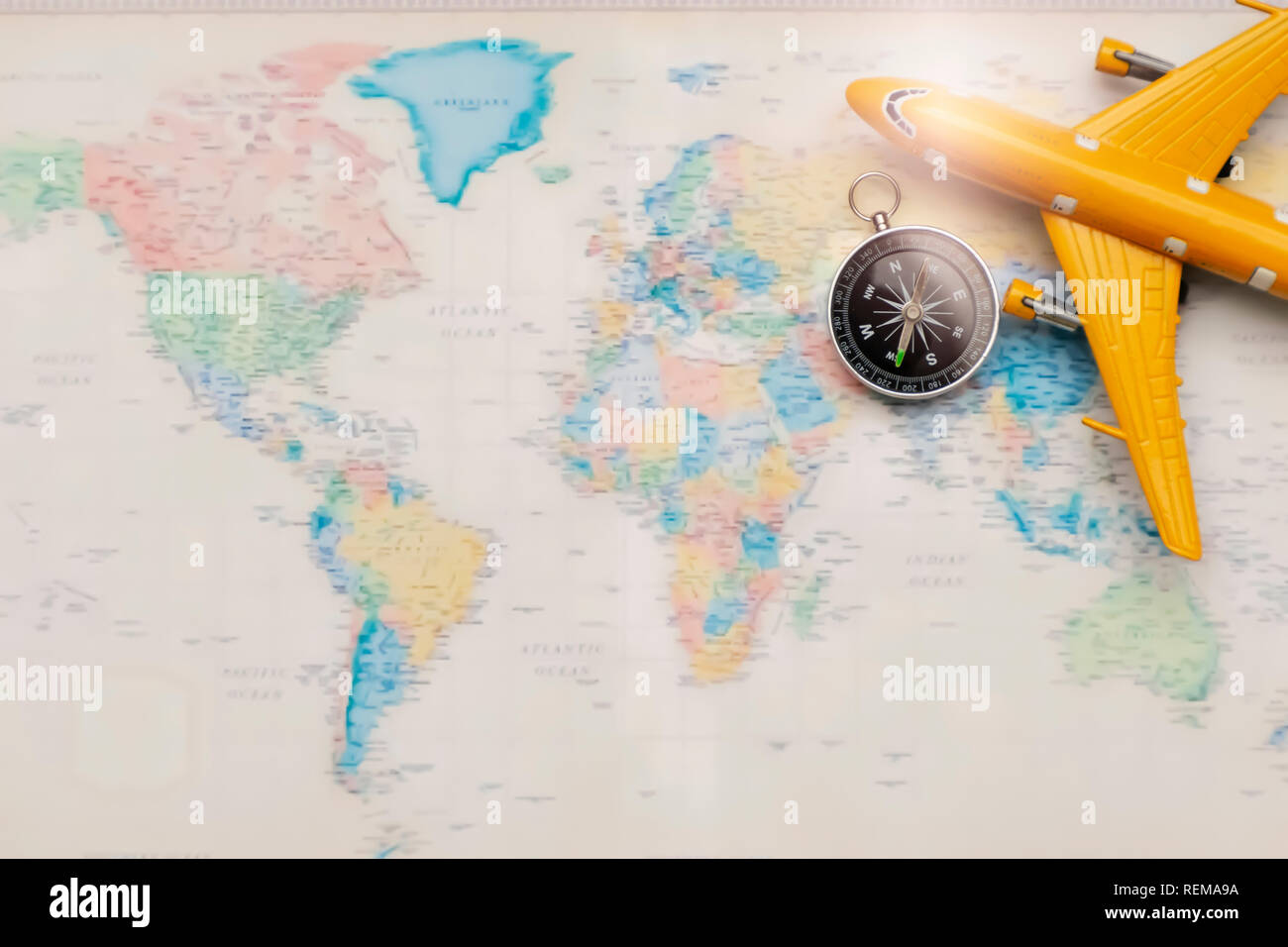 Concept Travel Tourism Airplane Models And Compass Placed On The World Plate Space To Enter Text Traveling To Find Yourself And A New Experience Stock Photo Alamy
