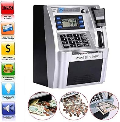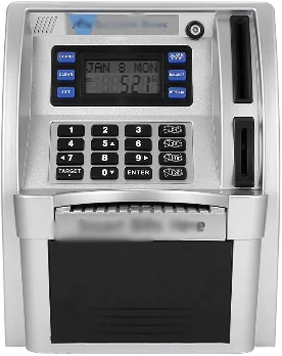 Amazon Com Goodsfederation Electronic Atm Savings Bank Digital Piggy Money Bank Machine Electronic Cash Box With Debit Card Password Login Voice Prompt Coin Recognition Targets Setting Sliver Black Toys Games