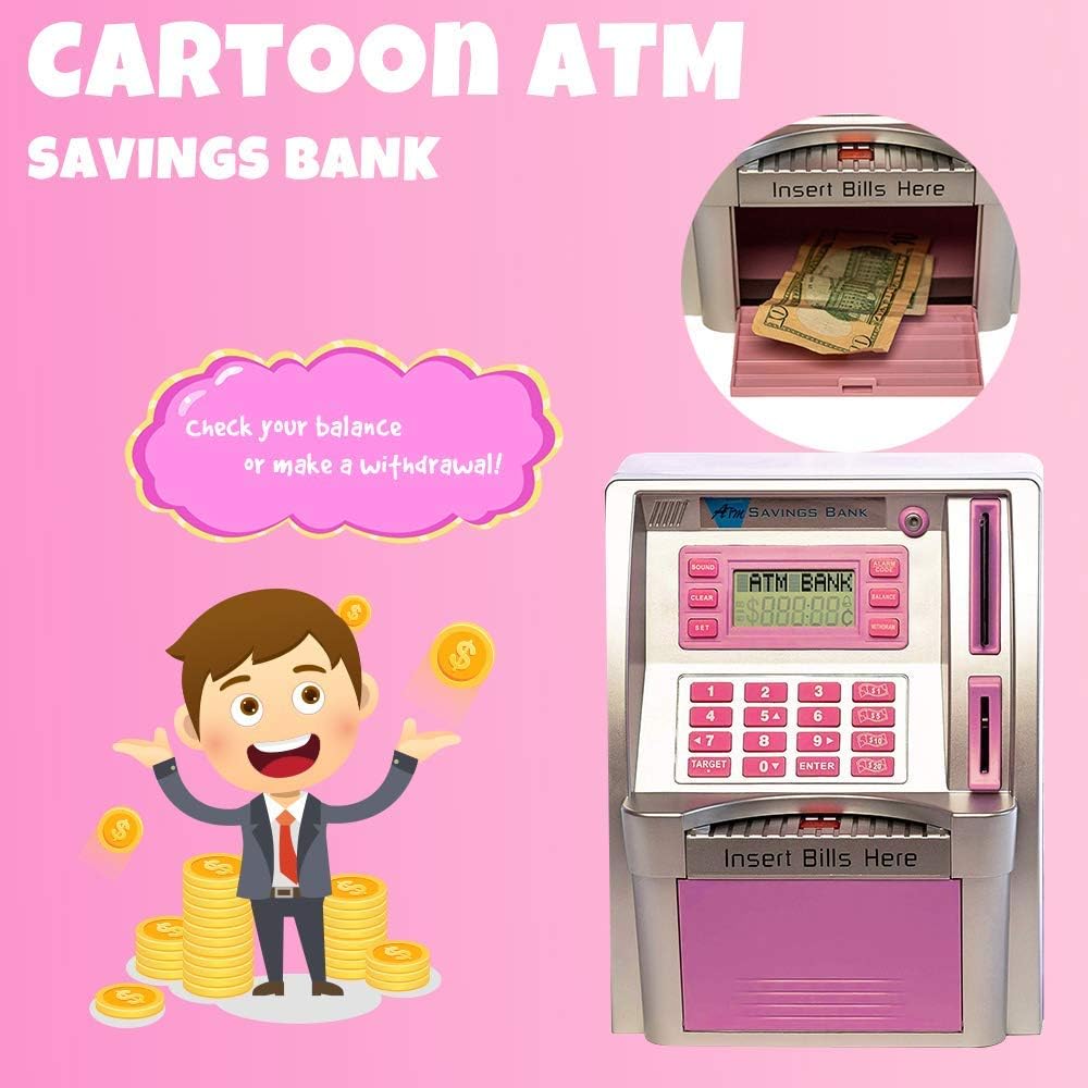 Amazon Com Cargooy Mini Atm Piggy Bank Atm Machine Best Gift For Kids Electronic Code Piggy Bank Money Counter Safe Box Coin Bank For Boys Girls Password Lock Case Pink Kitchen Dining