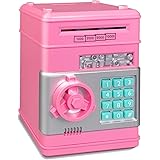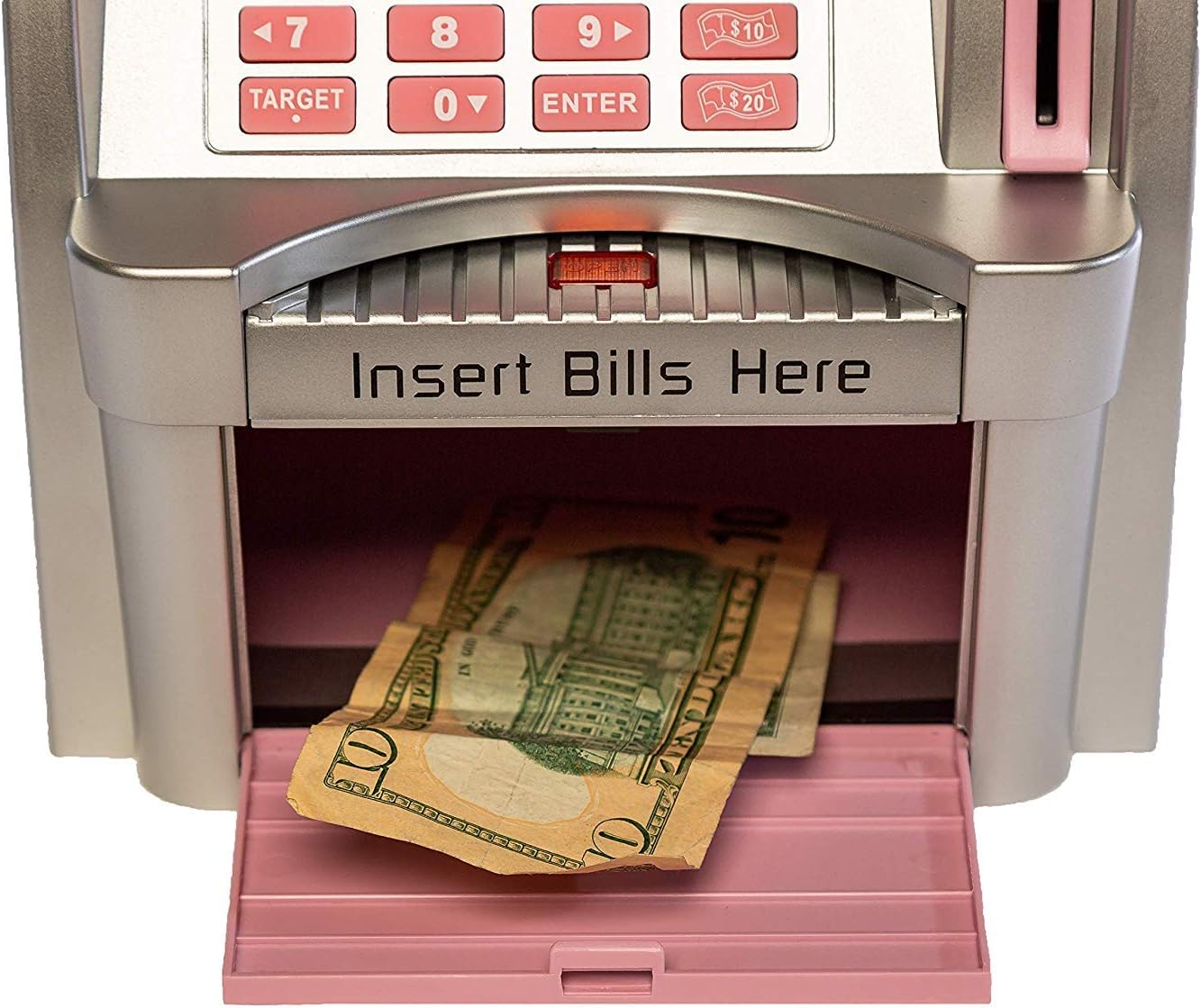 Amazon Com Setibre Piggy Bank Electronic Atm Password Cash Coin Can Auto Scroll Paper Money Saving Box Toy Gift For Kids Pink Toys Games