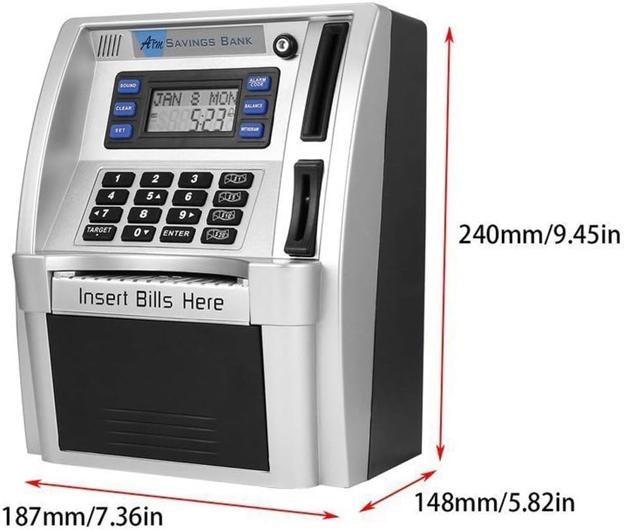 Amazon Com Lb Atm Savings Bank Electronic Mini Atm Piggy Bank Cash Coin Educational Atm For Birthday Gift Kitchen Dining