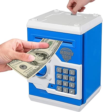 Amazon Com Aueyguse Toy Mini Safe Atm Saving Banks For Real Money Change Coin Counter Cash Drawer Register For Kids Storage Deposit Box Digital Piggy Machine Children Password Lock Case Blue Toys Games