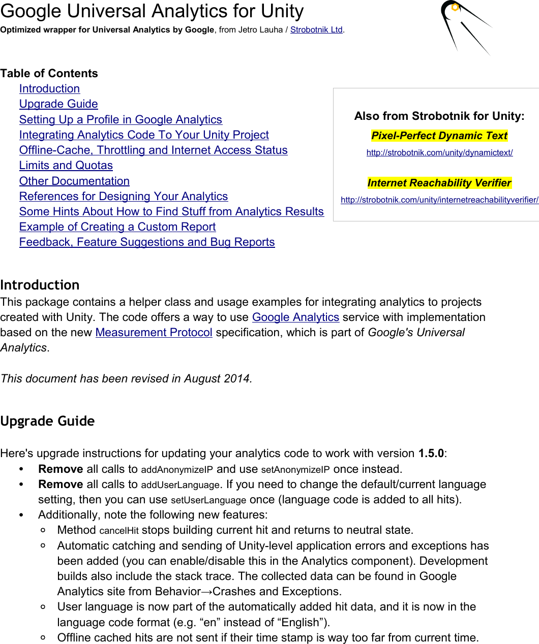 So you have a little more flexibility in the interface with Google Analytics, but those who are using BigQuery won’t find this to be a major issue for Firebase anymore 6 Platform Support Currently, Google Analytics for Firebase is available for iOS, Android, C and Unity, specifically – take a look at the documentation here This. Unity Analytics is a simple but powerful data platform that provides analytics Abbreviation of Unity Analytics See in Glossary for your Unity game Find out who the players are in your game and their ingame behavior Important For information about EU General Data Protection Regulation (GDPR) compliance, see Unity Analytics and the EU General Data Protection Regulation. I use this unity package googleanalyticsplugin to send data to google from my application I have an object googleAnalytics declared public, when I play my application in start method, I start a session of googleAnalyticsStartSession();.